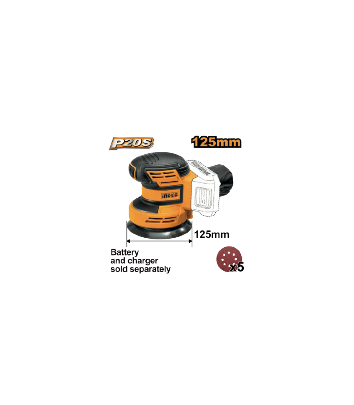 Ingco Lijadora Rotorbital Inalámbrica 125mm