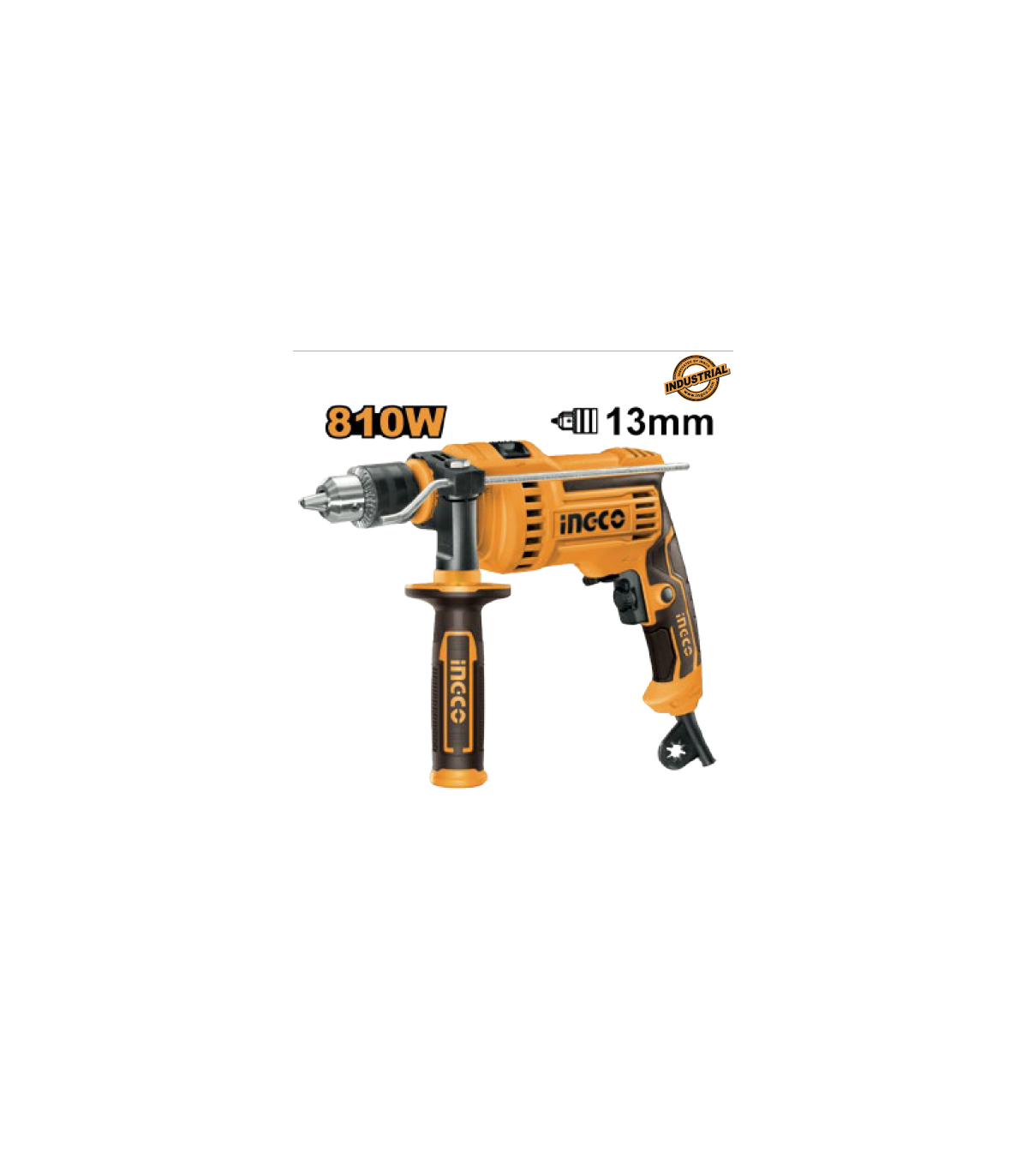 Potencia de entrada: 810W Velocidad sin carga: 0-2800 rpm Capacidad máxima de perforación: 13 mm Control de velocidad variable Interruptor de avance/retroceso Función de percutor Con 1 juego de escobillas de carbón adicionales Embalado en caja de color